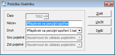 Ve mzdovem ciselniku lze nove zalozit polozku s poradim